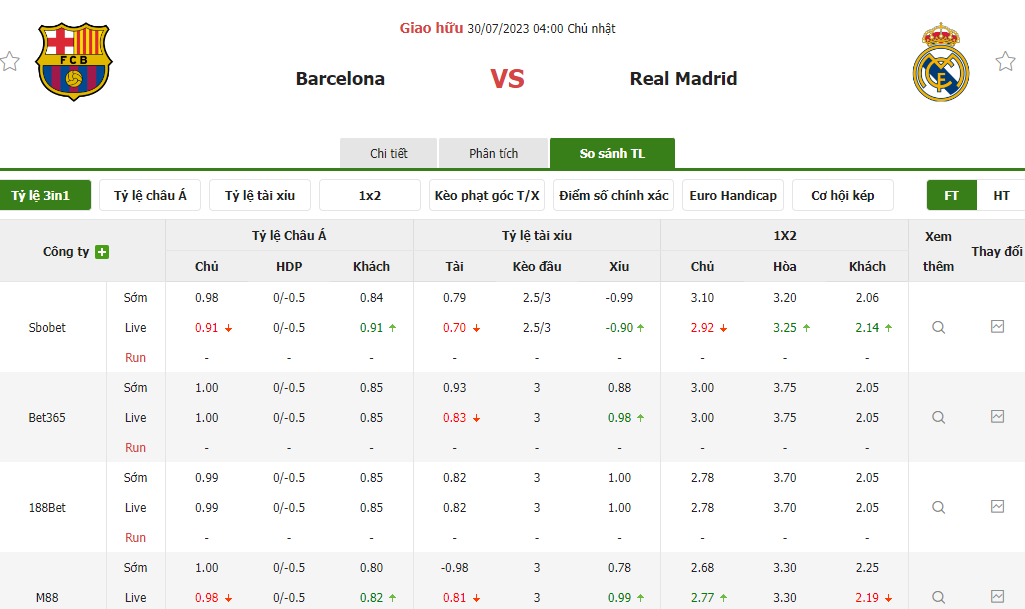 Tỷ lệ kèo trận đấu Barcelona vs Real Madrid