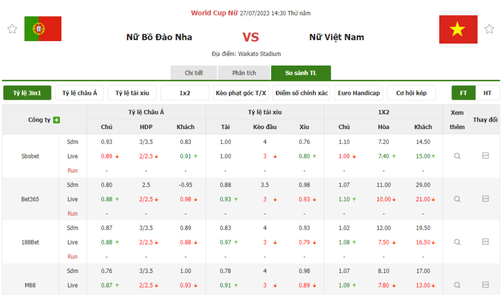 Tỷ lệ kèo trận đấu Bồ Đào Nha vs Việt Nam