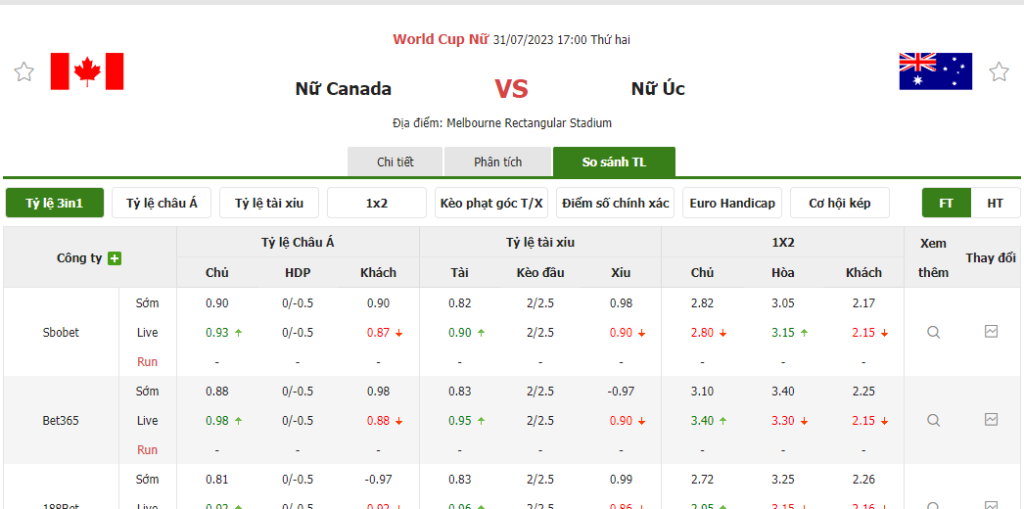 Tỷ lệ kèo trận đấu Nữ Canada vs Nữ Úc